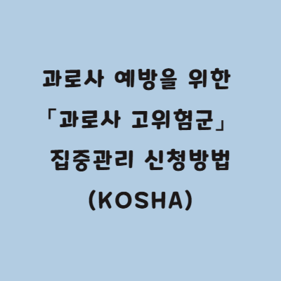 이런 고민이 든다면, 근로자의 건강을 집중적으로 관리하는 한국산업안전보건공단(KOSHA)의 과로사 고위험군 집중관리 서비스를 추천합니다.