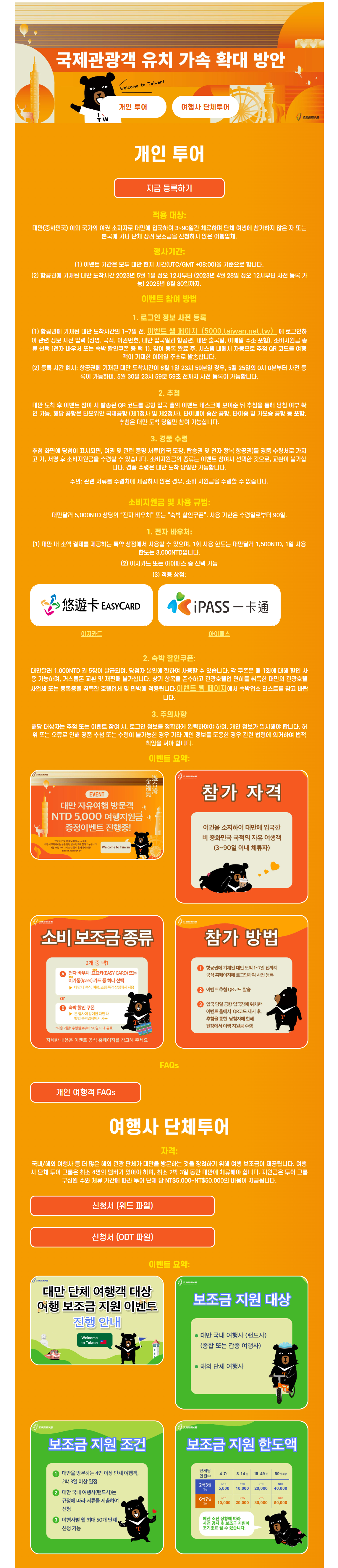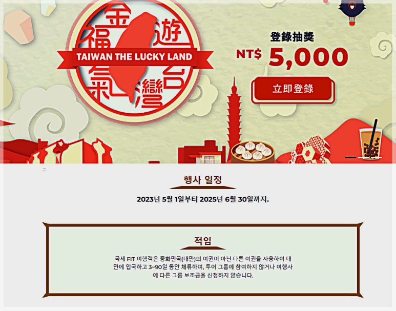 대만 관광청에서 외국인 관광객 유치 활성화를 위해 제공하는 프로그램입니다.