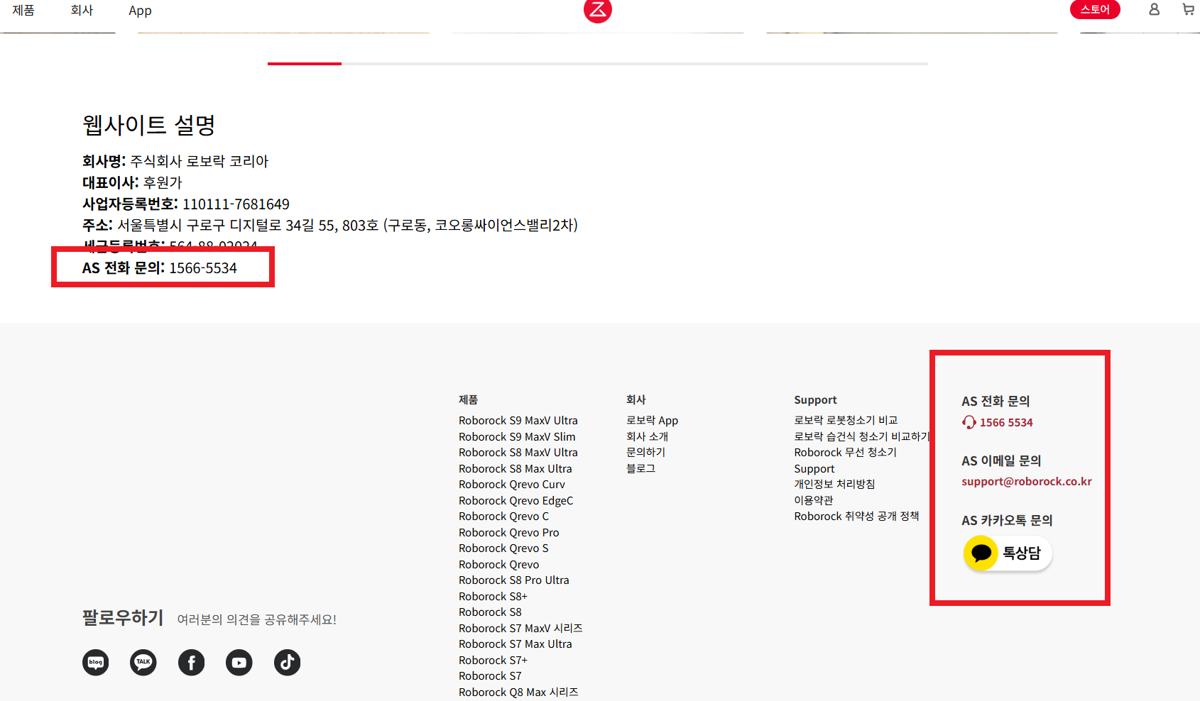 로보락 홈페이지에서 카카오 상담 연결 가능합니다.