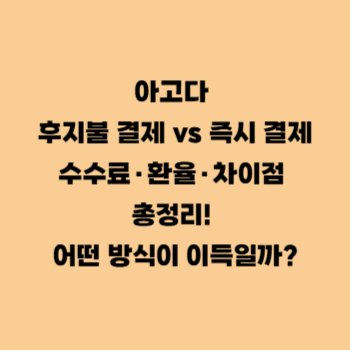 해외 숙소 예약할 때, 아고다의 ‘후지불’과 ‘즉시 결제’ 중 어떤 걸 선택해야 할지 고민되시죠? 수수료, 환율, 결제 시점 등 모든 차이를 비교해보고, 어떤 방식이 더 유리한지 이 글에서 자세히 알려드릴게요.