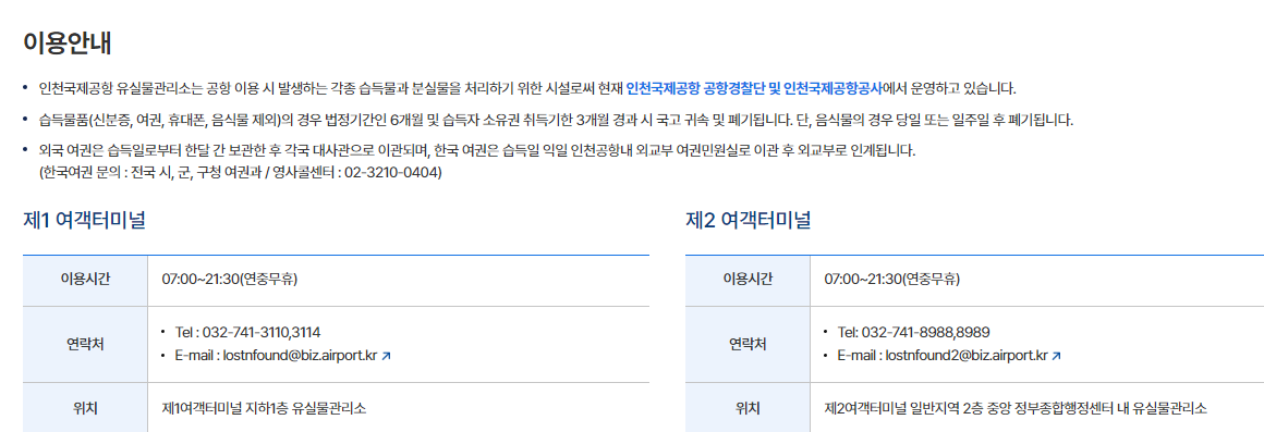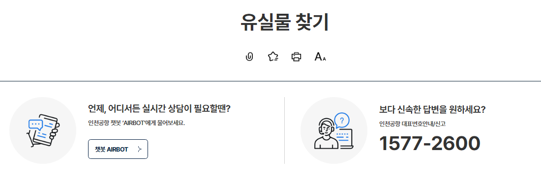 - 온라인 신고: 인천공항 유실물 홈페이지에서 24시간 접수 가능