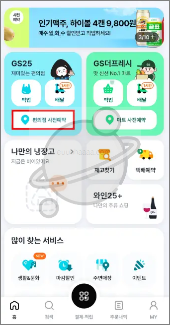 GS25 인기상품, 사전예약으로 먼저 확보하세요! 매장 가도 품절인 인기 상품들, 이제 '우리동네GS' 앱을 통해 미리 예약하고 편하게 수령하세요. 할인까지 적용되는 사전 예약 방법, 지금 확인해보세요.