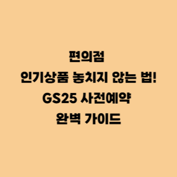 GS25 사전예약은 품절 걱정 없이 인기상품을 확보할 수 있는 시스템이에요. 특히 시즌 한정이나 신제품 출시 시점에 유용하죠. 🛍️