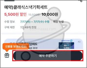 'GS25의 인기 상품을 미리 앱으로 예약해 원하는 날짜에 수령할 수 있는 서비스입니다.'