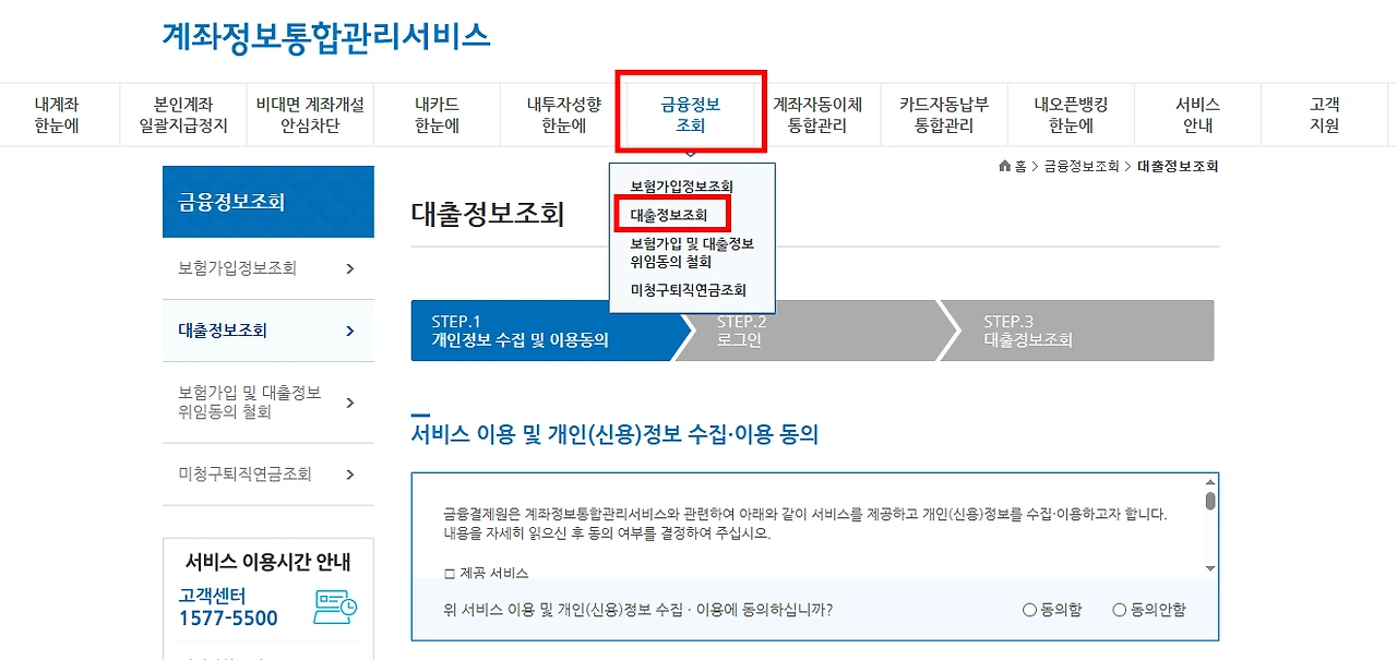 - 내 돈 관리 > 계좌 한눈에 > 대출 현황 조회